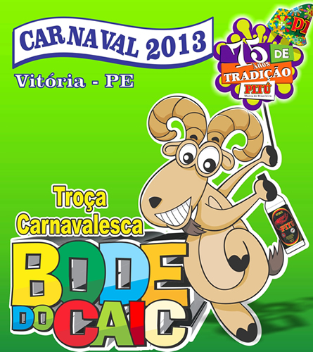 Bode do Caic – Carnaval 2013 Publicado em 1 de fevereiro de 2013 por Neste domingo dia 03. Concentração a partir do meio-dia com cerveja, licor, buchada e muito frevo. Camisa: R$ 20,00 a venda na Auto Escola Nova Dinâmica e Souza Construções em Águas Brancas.