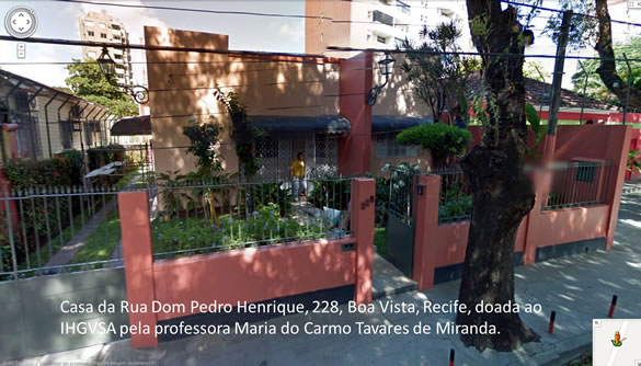Instituto Histórico e Geográfico da Vitória disponibiliza registro fotográfico do imóvel, situada a Rua Dom Pedro Henrique Nº 228 – Boa Vista na cidade do Recife doado pela Professora Maria do Carmo Tavares de Miranda.