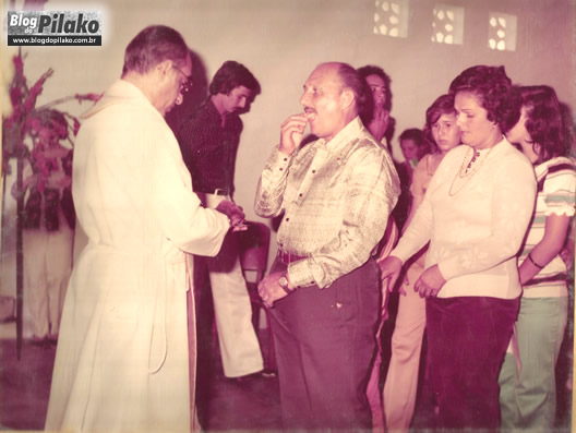 Foto registada durante as festividades de 50 anos de Seu Zito Mariano, realizada na capela de São João Batista, localizada nas proximidades da Gamela de Ouro. Na foto: Padre Renato, Zito Mariano e Dona Anita. Foto registrada em 1978.