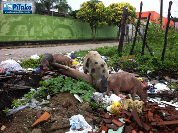 Infelizmente seremos obrigados a mais uma vez abrir a “jaula do Elias” e zerar o contador, pois, ontem (29), no início da tarde na Rua Jornalista Célio Meira, Cajá, próximo da FAINTVISA, nossas lentes, mais uma vez, flagraram porcos FAZENDO A FESTA nos entulhos e lixos que a Prefeitura não recolheu.