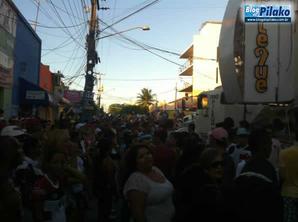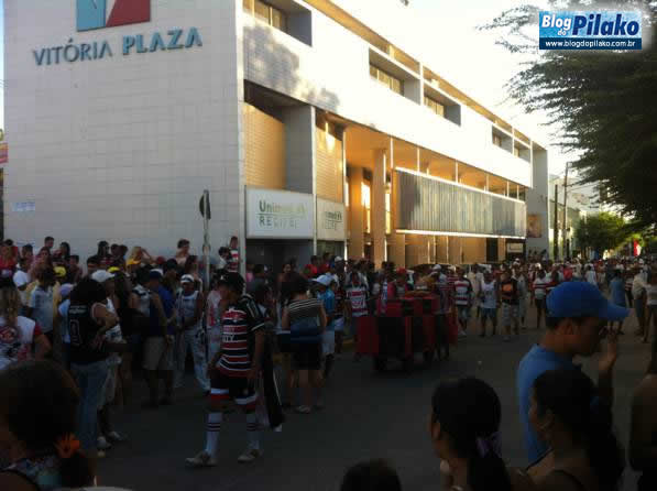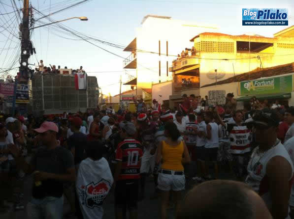 Uma verdadeira multidão acompanhou o trio elétrico que além de fazer o torcedor dançar e cantar, aproveitou para tirar uma ondinha com os torcedores rubro negro, pois até, vez por outra, soltava a gravação dos momentos em que o time do Santa Cruz fazia os gols na partida final. Até um caixão de defunto, nas cores do rival, apareceu, como também, uma ratoeira, fazendo uma clara alusão ao jogador tricolor CAÇA-RATO.