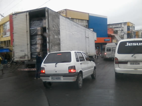 Recebemos uma mensagem com foto do internauta Andrade na sexta-feira (17), onde o mesmo reclama do trânsito no centro comercial da Vitória dizendo: