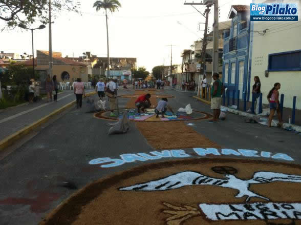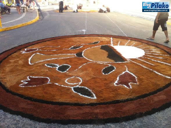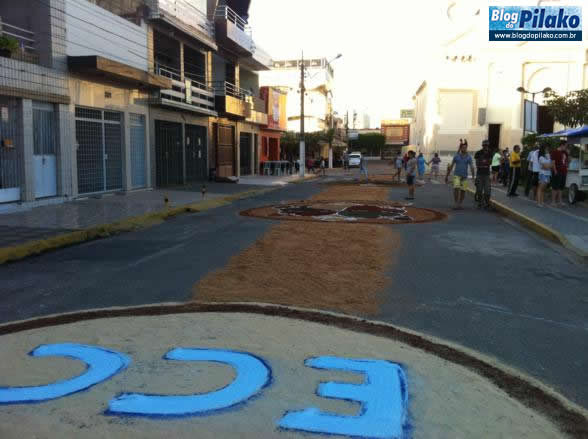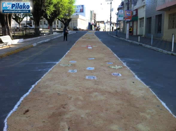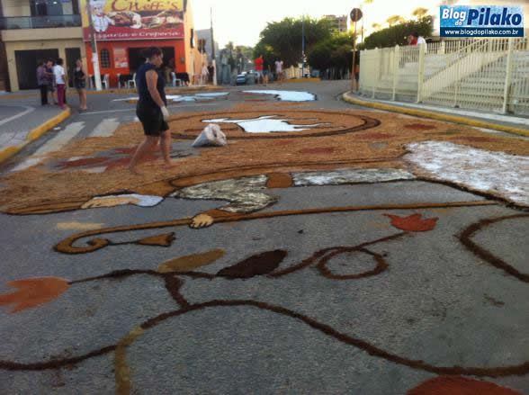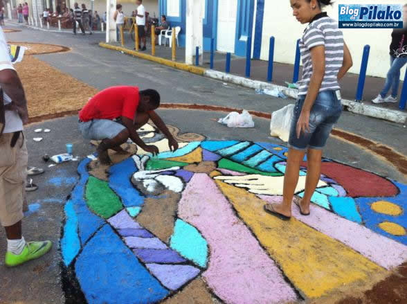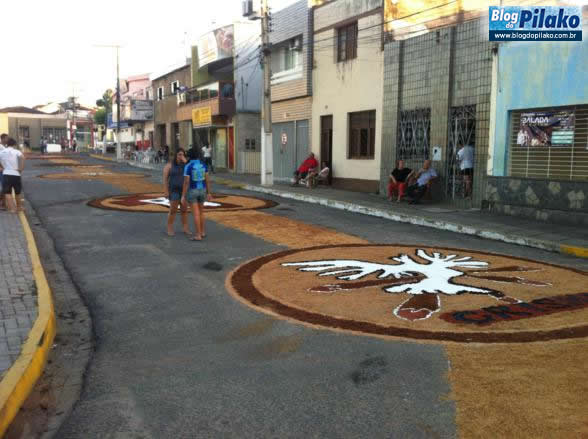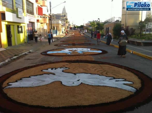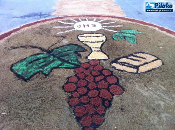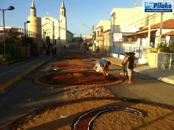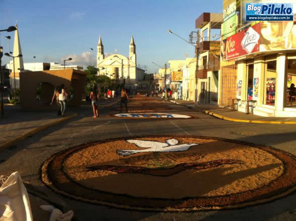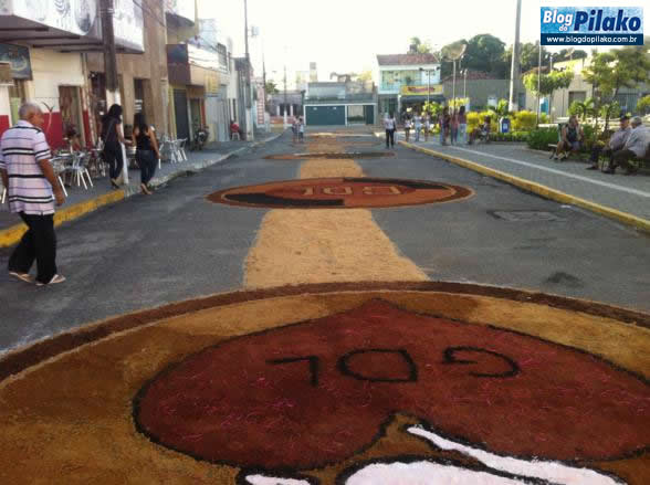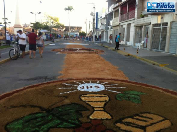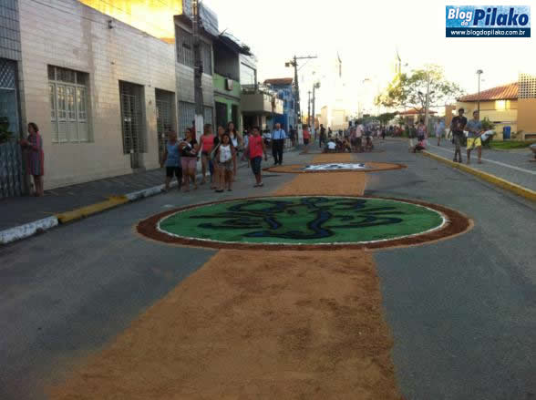 Na tarde de ontem (30), feriado de Corpus Christi, nossas lentes registraram nos bairros da Matriz e do Livramento os tradicionais tapetes com o colorido bem vivo e desenhos com inspiração religiosa.