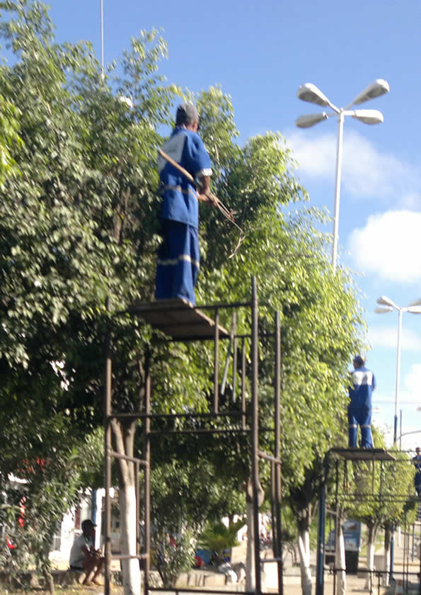 Internauta que pediu para nãos ser identificado flagra funcionários da Prefeitura trabalhando sem equipamentos. Veja na íntegra: