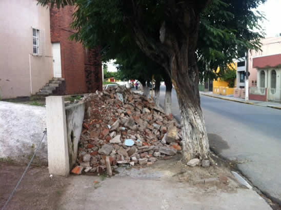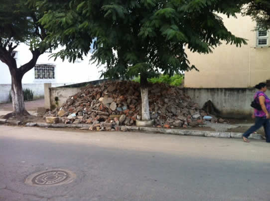 “Pilako, há vários dias este entulho está na calçada do Fórum da cidade atrapalhando o direito sagrado de ir e vir das pessoas………este descaso acontece na calçada do fórum da cidade …imagina o que acontece lá nas calçadas dos bairros mais afastados …..só Deus sabe lá……..”