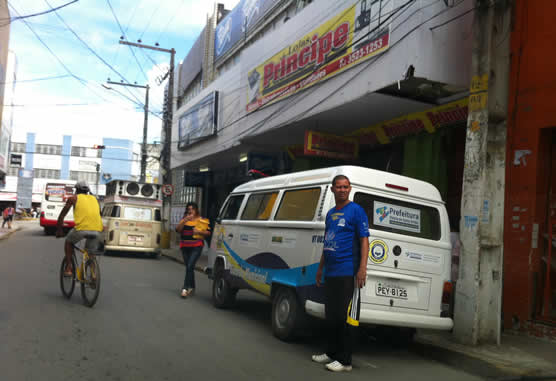 “Pilako essa semana tive que aguentar um trânsito danado da matriz até o banco do Brasil. Quando vou chegando perto das lojas Catan, antiga Pitú Lanches, dei de cara com o motivo daquele congestionamento todo. UMA KOMBI DA PREFEITURA ESTACIONADA EM LUGAR IRREGULAR… Vê se pode! Onde é que vamos parar?”