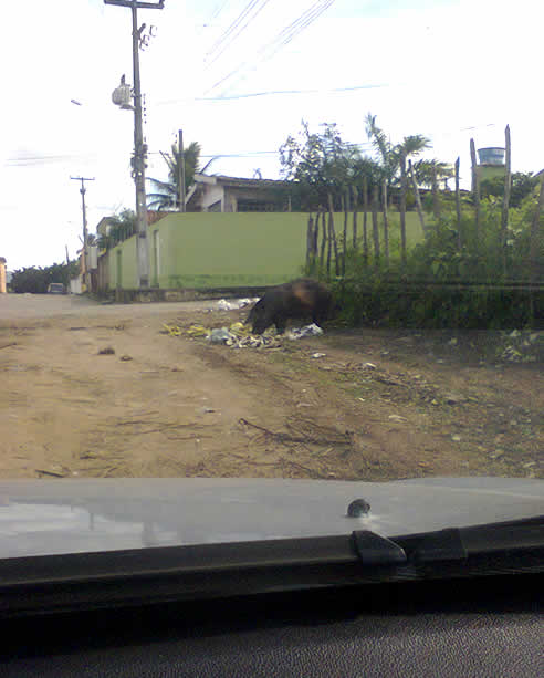 “A mamãe porca fazendo a festa no Cajá. Viva a incompetência da prefeitura de Vitória que não consegue nem tirar os bichos da rua”.