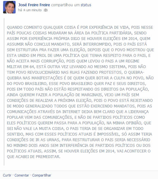 Internauta fala das últimas manifestações ocorridas nas ruas. Publicado em 19 de julho de 2013 por Arquiles Petrus