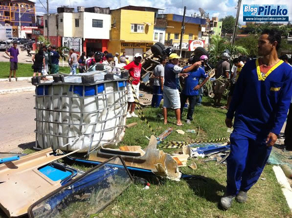 Por volta do meio dia de hoje (29) nossas lentes registraram nas imediações do Terminal Rodoviário de nossa cidade um acidente. Segundo informações colhidas no local, o veiculo tipo MEIO CAMINHÃO, na hora do acidente trafegava com alguns recipientes usados no transporte de água. Com relação à vitimas, os mesmos não tinham informações seguras. Veja o vídeo: