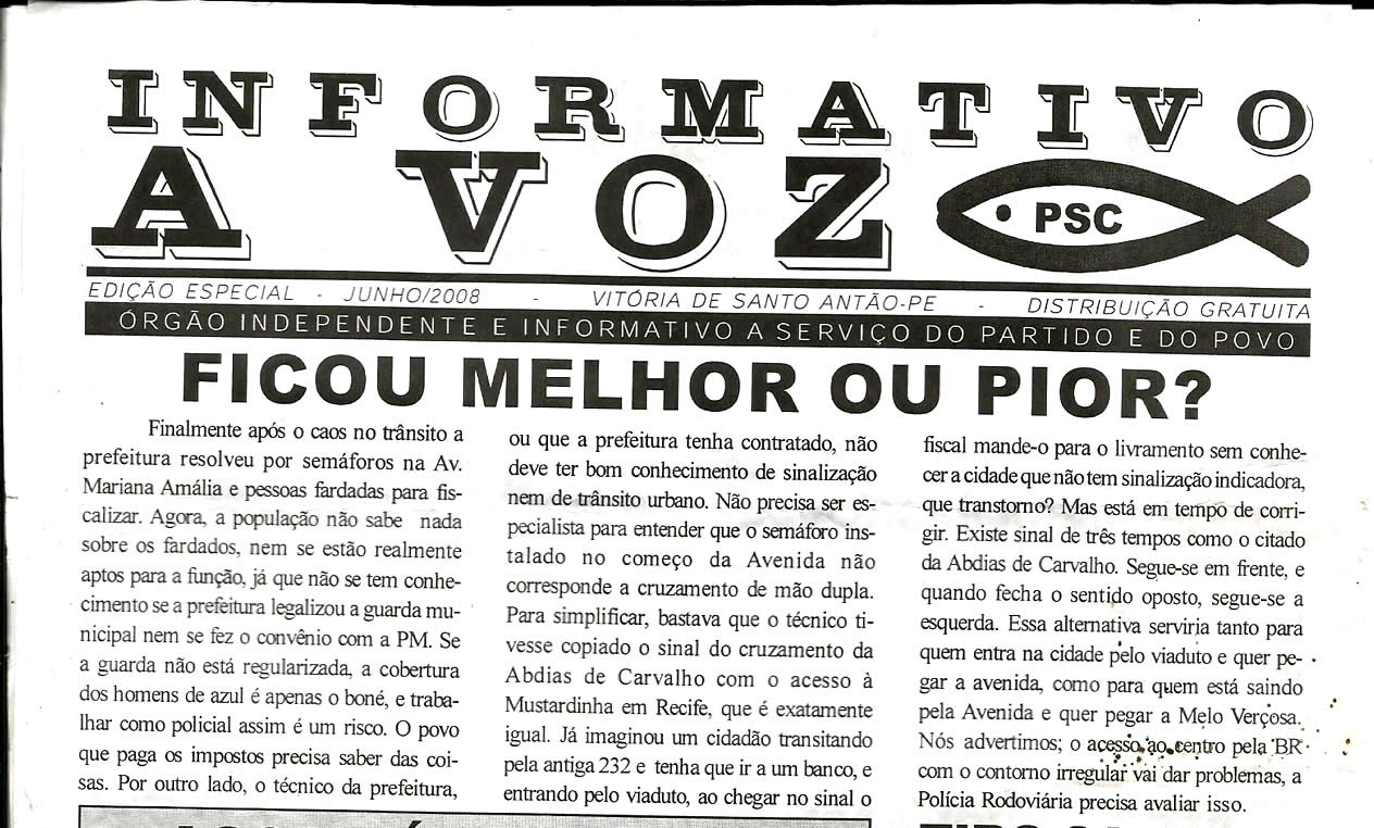 No disciplinamento do trânsito o amigo Hildebrando, entre tantas outras coisas, não só cobrava ações como questionava, com ares, aparentemente de desprezo, para os então funcionários da municipalidade que faziam a função dos atuais agentes de trânsito. Leiam matéria do referido informativo A Voz,  Edição Especial  de junho de 2008. Clique na imagem para ampliar.