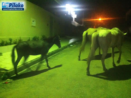 Quer seja dia ou noite, os BICHOS CONTINUAM NAS RUAS. Na noite da sexta (23), por exemplo, nossas lentes flagraram três cavalos circulando tranquilamente pela a rua Elzanira Bezerra no bairro do Cajá.