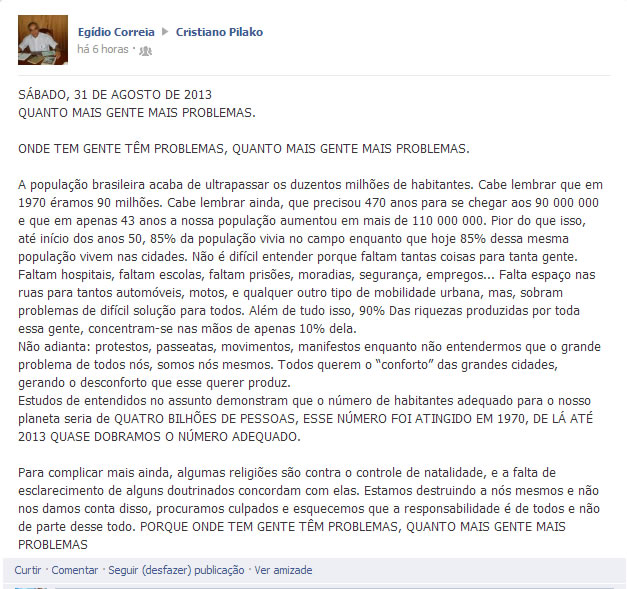 Poeta Egidio Correia participa do blog através das redes sociais. Publicado em 6 de setembro de 2013 por Arquiles Petrus