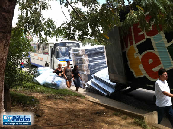 Na manhã de hoje (30) nossas lentes flagraram, na Praça 3 de Agosto, um caminhão baú descarregando colchões em plena via pública. Vale salientar que já temos Lei disciplinando esta matéria, onde a mesma não permite tal procedimento.