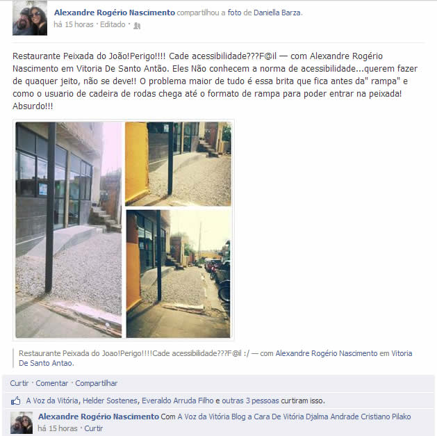 Internauta Alexandre Rogério cobra por acessibilidade. Publicado em 7 de novembro de 2013 por Arquiles Petrus
