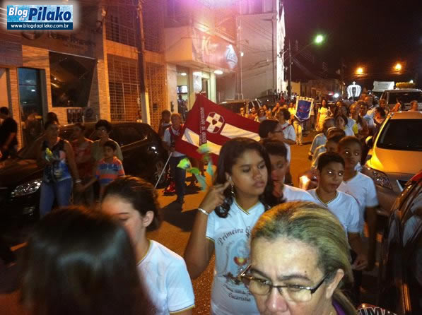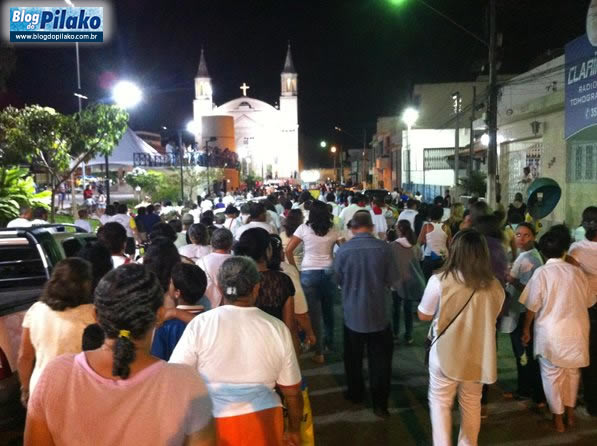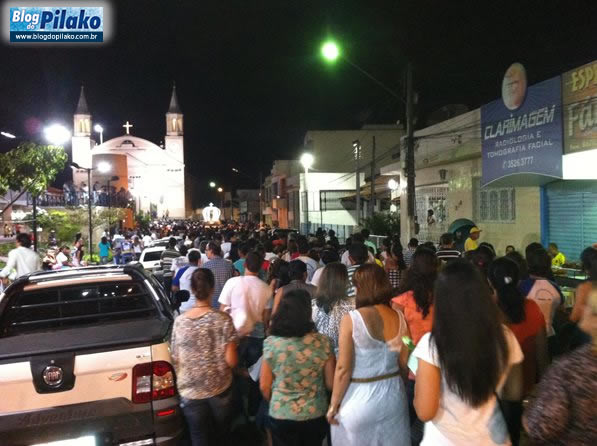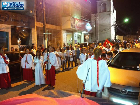 Na ocasião da passagem do cortejo pelo Pátio da Matriz, nossas lentes registraram alguma imagens que bem reflete a empolgação do rebanho comandado pelo carismático Padre Rubens. Uma banda tocando repertório religioso em cima de um trio elétrico manteve aceso o entusiasmo dos católicos.