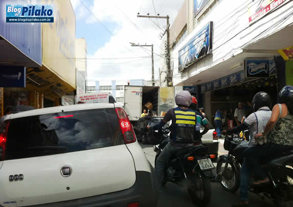 O problema foi o seguinte: Um caminhão, do tipo baú, estacionou na referida rua, ao lado do Prédio do Banco do Brasil, para descarregar mercadorias como se ali fosse permitido tal manobra. O pior disso tudo, é que essa bronca demorou muito, pois a retenção no fluxo de veículo já estava chegando lá na Praça Diogo de Braga, próximo ao Restaurante Pizza Grill.