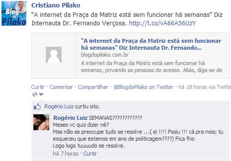 Internauta Rogério Luz interage pelo Facebook Publicado em 6 de fevereiro de 2014 por Arquiles Petrus