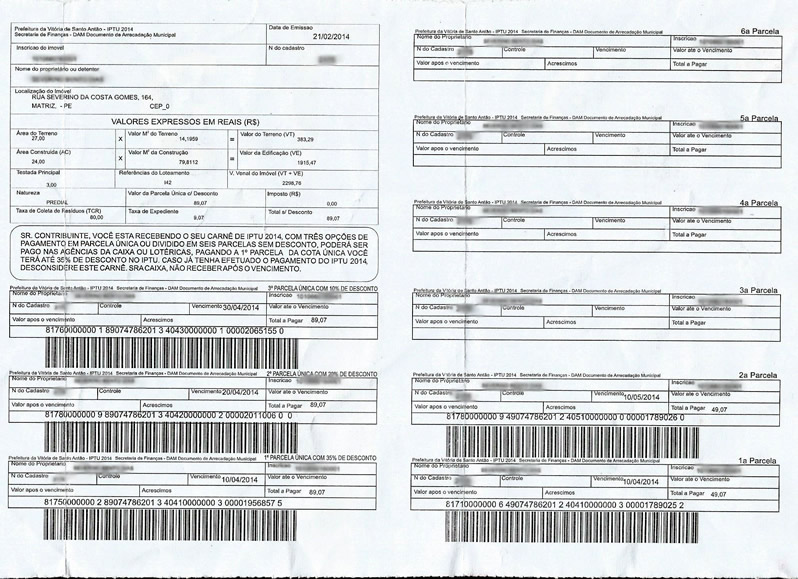 O estranho desta história é que no próprio carnê do IPTU não existe nenhuma especificação relativa ao valor cobrado. Veja o documento:
