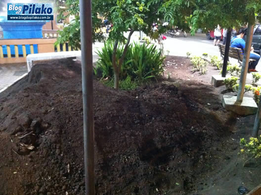 O curioso disso tudo é que na noite de ontem (27) ao chegar na Praça da Matriz para comer milho assado, no ponto do amigo Edvaldo, como de costume, observei um monte de terra dentro do canteiro assim como tomei conhecimento que lá do outro lado – próximo ao Doce Cantinho – também ocorria tal operação.