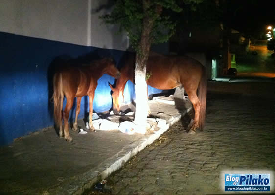 Nossas lentes registraram na noite da sexta (04), na Rua Horácio de Barros, mais precisamente na calçada por trás do Colégio Pedro Ribeiro dois cavalos se alimentando de lixo. O internauta do Blog do Pilako acompanhou, e ainda acompanha, nossa “luta” para acabar com esta verdadeira IMORALIDADE que é a circulação de animais de grande porte pelas vias centrais da cidade.