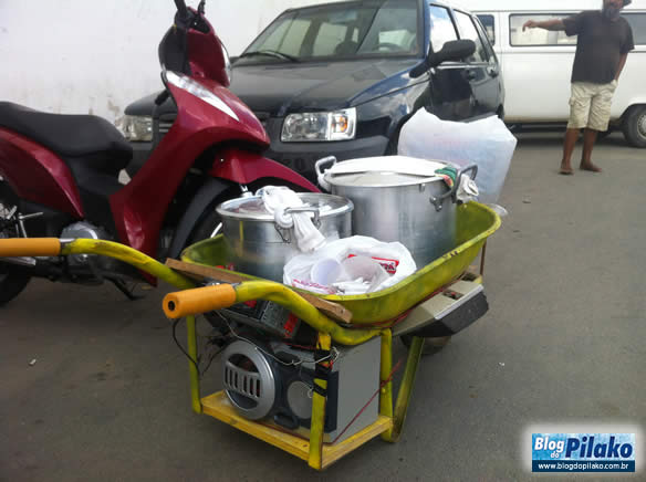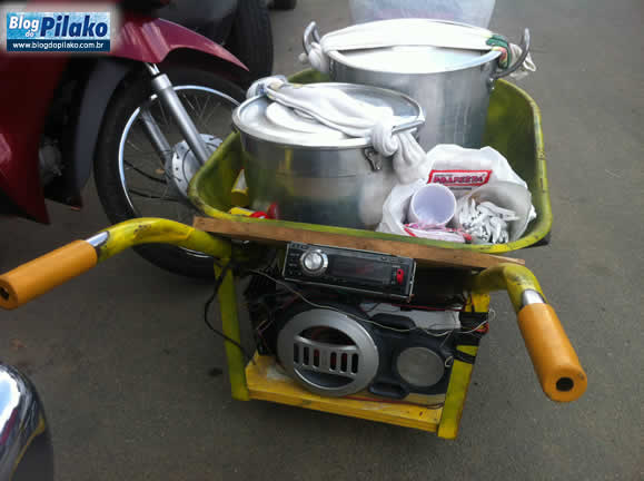 Muito bem, esta semana ao caminhar pelo Centro Comercial, próximo à Praça Leão Coroado, uma carro de mão me chamou a atenção face a “parafernália” eletrônica nele instalado. Equipado com bateria, iluminação, caixa de som e toca cd que também pode “rodar” pen-driver.