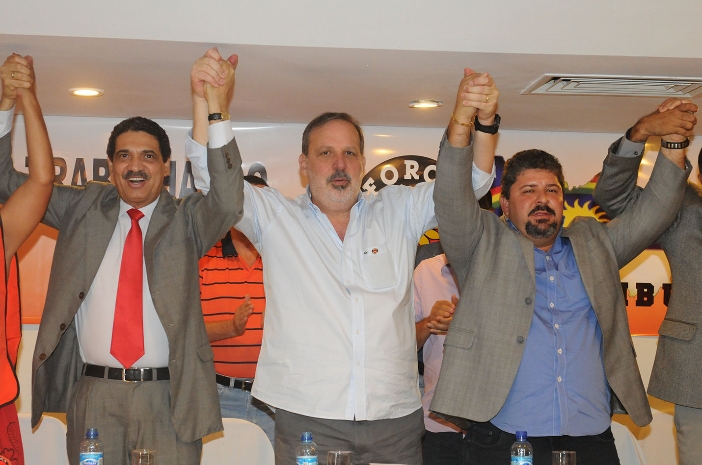 O pré-candidato ao Governo de Pernambuco, o senador Armando Monteiro (PTB), e o pré-candidato ao Senado, deputado federal João Paulo (PT), foram recebidos na manhã desta segunda-feira (14), por representantes de 130 sindicatos que reúnem cerca de 1 milhão de trabalhadores associados à Força Sindical em Pernambuco. O evento aconteceu em um hotel no Recife e foi organizado pelo presidente da entidade no Estado, Aldo Amaral, pré-candidato a deputado federal pelo PRB, partido que na ultima semana também declarou apoio a Armando e João Paulo. Participaram do ato mais de 500 pessoas.