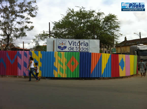 Na manhã de ontem (29) observei que a placa da obra na praça do livramento – “Jacaré e Anjo”, finalmente foi fixada acima das telhas que servem de tapume para o canteiro de obra, antes encoberta.