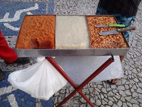 Uma vez minha mãe disse a minha irmã que comida de rua era porcaria. Quando o doce japonês passou na porta de casa, minha irmã pediu a minha mãe: – Mamãe, compra porcaria pra mim.