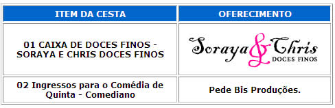 Para você empresário , profissional liberal, artista e etc, que queira fazer suas doações para a SEXTA DO PILAKO, podem mandar seus produtos e\ou serviços e terão os seus nomes (empresas) divulgados. Antecipadamente agradecemos a contribuição de todos e desejamos boa sorte aos participantes.