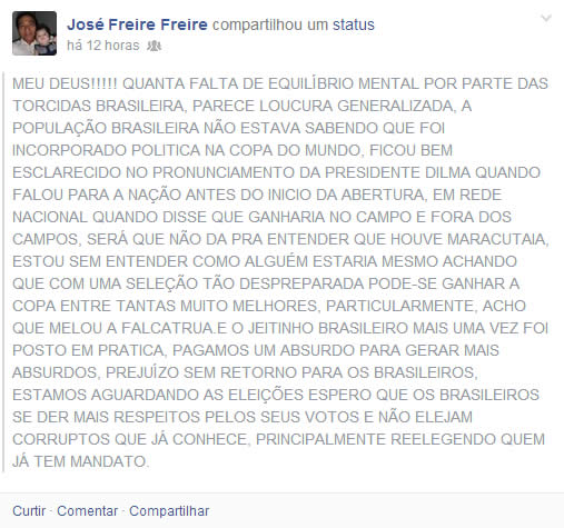 Internauta Maestro Freire, interage pelo facebook Publicado em 10 de julho de 2014 por Arquiles Petrus