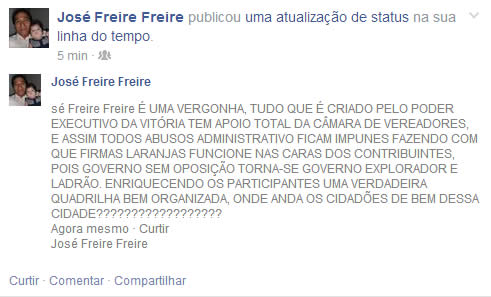 Internauta Maestro Freire interage pelo facebook Publicado em 15 de julho de 2014 por Arquiles Petrus