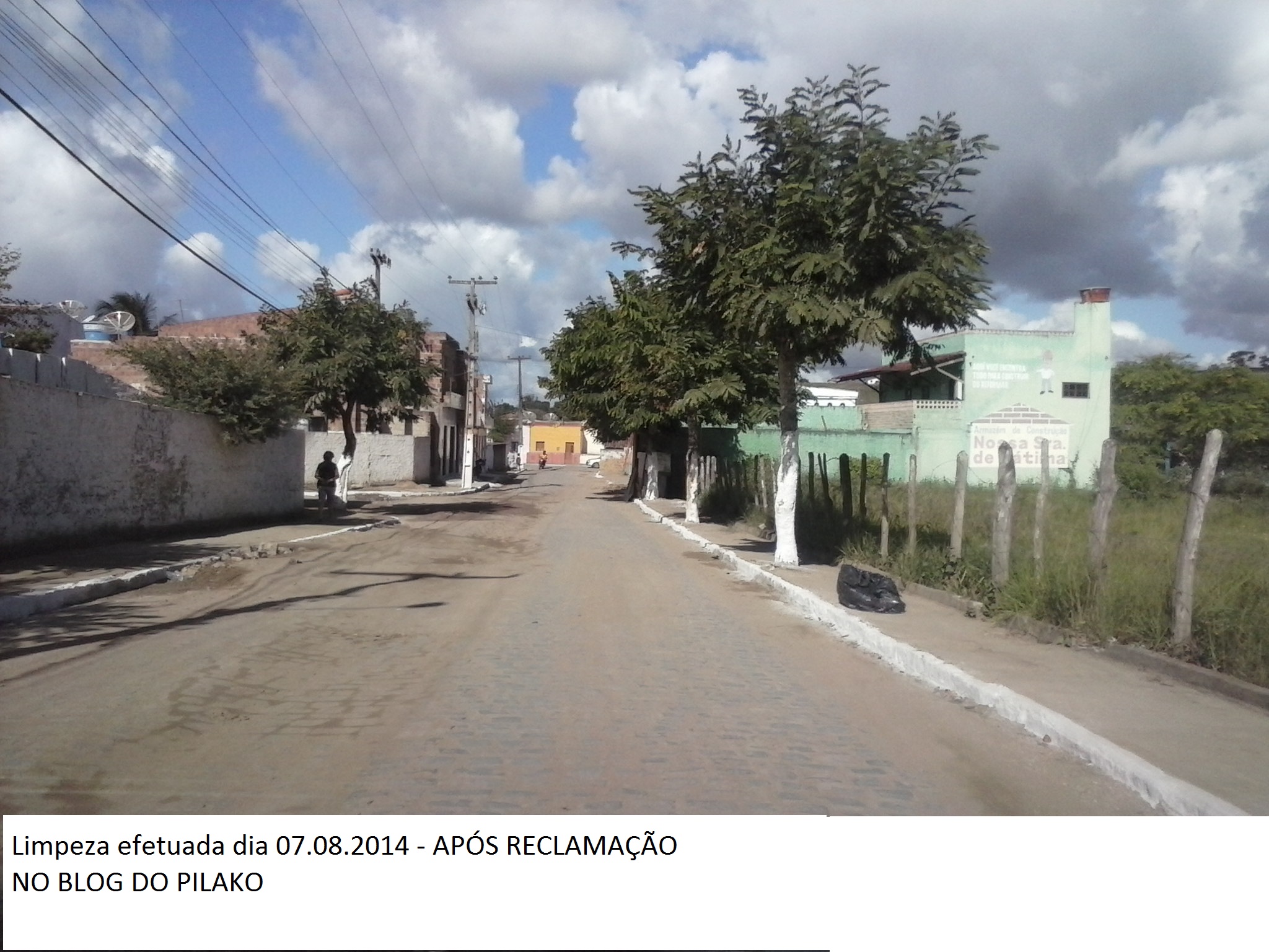 Pilako, após reclamação aqui postada o PROBLEMA no nosso bairo CAIC (CAIQUE) foi parcialmente resolvido, principalmente na frente do CAIC DIOGO DE BRAGA. No dia de ontem 08 de agosto de 2014 a rua de acesso foi devidamente varrida e as guias de meio-fio devidamente pintados. CONTUDO, do término do muro do CAIC DIOGO DE BRAGA até a entrada do IFPE (AGRO) existem dezesseis RUAS contadas do portão do CAIC. Nesse itinerário existem 5 ou 6 pontos de lixos, sofá abandonado e entulhos. Nesse lugar a PREFEITURA JUNTAMENTE COM A LOCAR não interviram. Desta forma, AGRADEÇO DIRETAMENTE AO BLOG DO PILAKO. Também não poderia deixar de agradecer a PREFEITURA e aos funcionários da LOCAR. Espero que possa usar novamente esse espaço para agradecer, assim que finalizarem o serviço. SEGUE FOTOS COMPARATIVA ANTES E APÓS A RECLAMAÇÃO, assim como de como se encontra o restante da localidade até o portão do IFPE ou seja, ÚLTIMA RUA DO CAIC (CAIQUE).