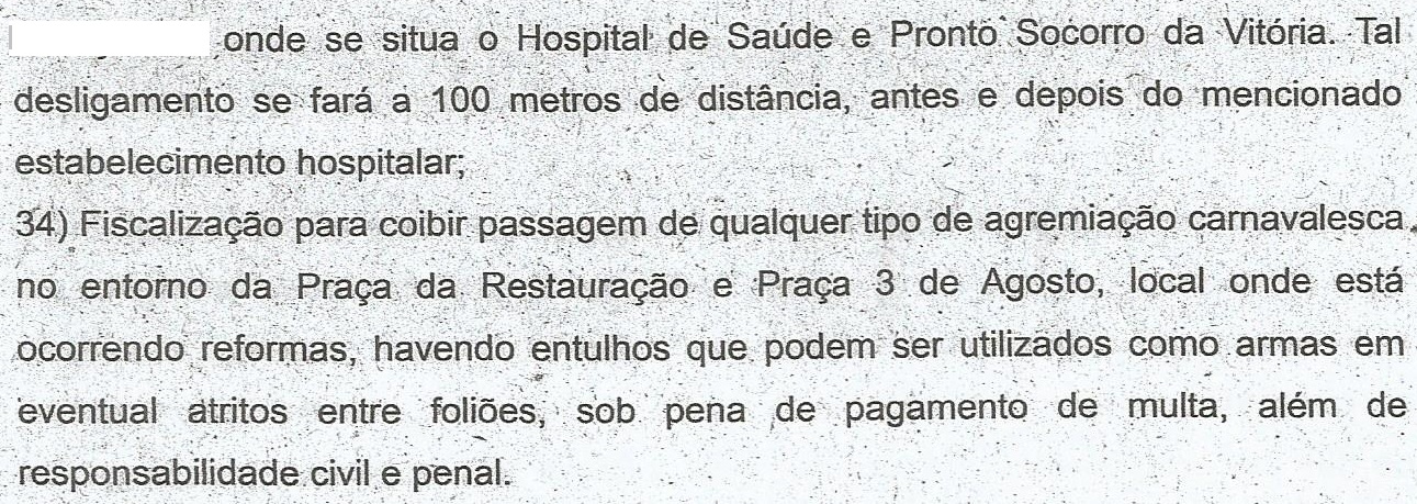 Devemos também levar em consideração que o mesmo TAC proíbe qualquer tipo de som mecânico a 100 metros de distância de Hospital.