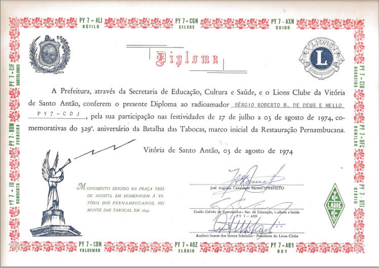 Este tipo de evento com radioamadores, que me lembre, aconteceu por pelo menos 03 vezes (1974, 1975 e 1977), tenho guardado com muito carinho meus diplomas/certificados de participação como radioamador iniciante.