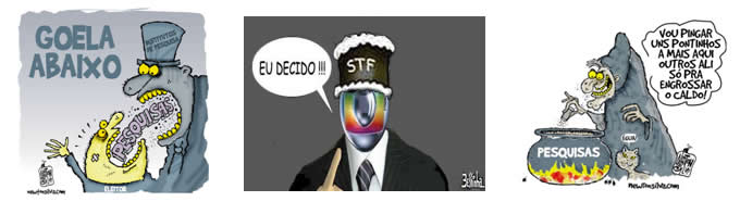 Com a imaturidade e a ignorância do eleitor Brasileiro, fica muito fácil para a grande mídia controlar seu voto, quando a massa tem como prioridade em sua vida, o próximo capítulo da “sua novela”, o jogo do seu time de futebol ou ainda o BIG BOSTA BRAZIL (perdão), sem esquecer que temos o jornalismo da Rede Globo que se faz de paladino da justiça, mas que na verdade omite informações e às que divulga o faz de forma tendenciosa, nada de anormal, se levarmos em conta a cartilha da família Marinho, à qual teve o seu mentor Roberto Marinho muito bem comparado por Leonel Brizola quando em entrevista à BBC de Londres falou “Roberto Marino é o Stalin das comunicações, quem não concorda com ele é mandado para a Sibéria”. É por esses e tantos outros motivos que pesquisa eleitoral não deveria existir no Brasil, pois influencia diretamente no resultado das eleições.