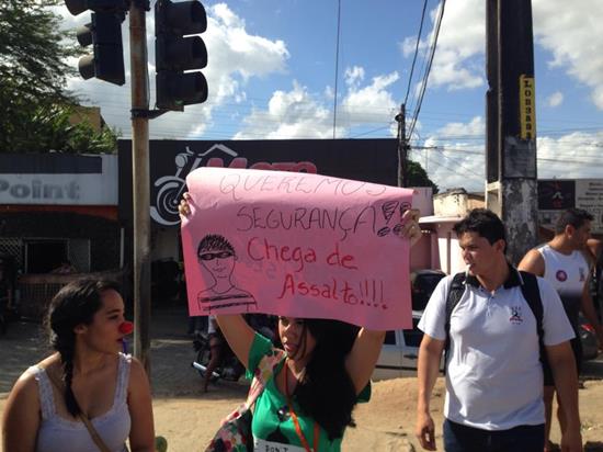 Os alunos saíram em passeata pelas principais ruas da cidade fazendo muito barulho para chamar a atenção da sociedade para o problema da insegurança. Por algum tempo, segundo informações – cerca de 30 minutos – fecharam o tráfego de veículos na movimentada Avenida Henrique de Holanda, na altura da subida do Reservatório.