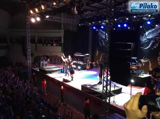 Bem diferente dos outros estilos musicais, no mundo do Rock, pelo menos foi o que pude perceber, as pessoas esperam “uma vida” para ficar frente a frente com os ídolos. Duas jovens que dividiram o camarote conosco, vieram de Fortaleza exclusivamente para participar do show, uma delas, inclusive, acompanha a banda desde os treze anos de idade.