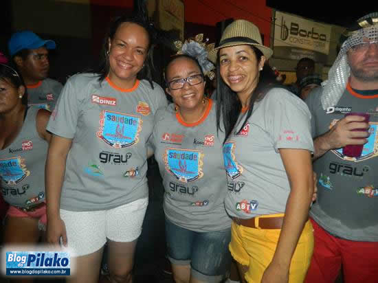 3. PILAKO, PARABENS! O BLOCO DA SAUDADE ESTAVA LINDOOO. SAIU PARA ABRILHANTAR A NOITE. FOI O MAIOR E O MELHOR BLOCO DO CARNAVAL DE 2015. DEIXOU SAUDADES. TENHO CERTEZA Q EM 2016 O BLOCO MARCARA PRESENÇA E + UMA VEZ SERA O DESTAQUE DO CARNAVAL VITORIENCE. + UMA VEZ PARABENS!!!