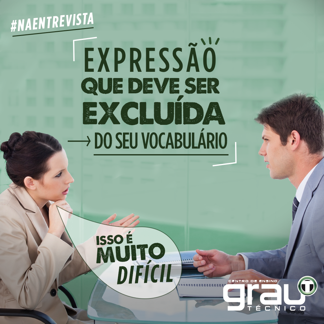 Expressões como “Isso é muito difícil” podem ser interpretadas de forma errada no mercado de trabalho. Substitua-a por trabalhoso. O que é difícil tende a ser trabalhoso, mas quando você troca a palavra significa que pode dar trabalho, mas não quer dizer que você vá desistir.‪#‎GrauTécnico‬‪#‎MercadoDeTrabalho‬