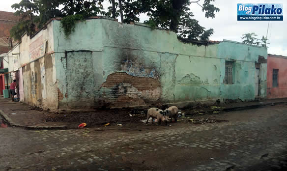 Na manhã de ontem (22) nossas lentes flagraram em uma das transversais da Rua Primitivo de Miranda, Centro Comercial, dois porcos se alimentando de LIXO e promovendo a maior sujeira e imundice.