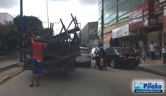 Na tarde de ontem (20), por exemplo, nossas lentes registraram mais uma vez que as carroças carregando bancos de madeiras continuam trafegando, em pleno horário de “vuco-vuco” do comércio, no sentido contrário na única via disponível – pelo centro da cidade – que liga o bairro da Matriz ao Centro Comercial e o Livramento. Veja o vídeo: