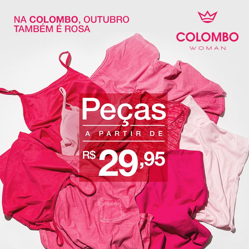 Momento Vitória Park Shopping Publicado em 14 de outubro de 2015 por Arquiles Petrus Mulheres, vocês tem feito o autoexame? Quanto mais cedo o câncer for detectado, mais chance ele tem de ser curado. Entre na campanha com a gente! Peças especiais a partir de 29,95. Na Colombo, outubro também é rosa.