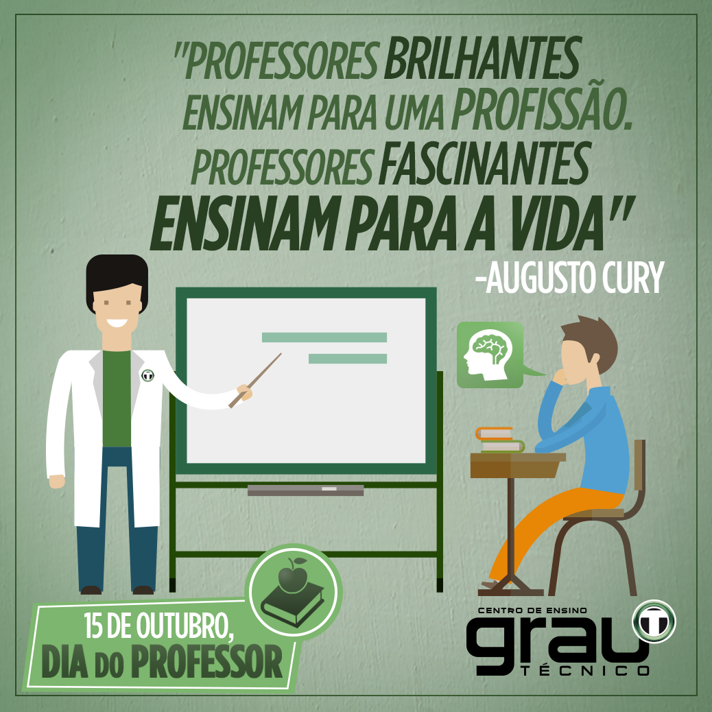 A transformação da vida de cada um de vocês começa por eles. Com diversos profissionais competentes e dedicados igual aos nossos, o dia de hoje não poderia passar em branco. Um Feliz dia do Professor a cada um de nossos funcionários que se empenham em transformar a vida de mais de 45.000 alunos em todo o Brasil. #GrauTécnico #DiaDoProfessor