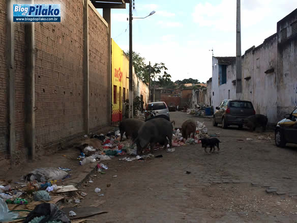 Na tarde anteontem (03) nossas lentes registraram uma verdadeira “festa dos porcos” em uma das ruas transversais da Rua Primitivo de Miranda, no Centro Comercial.