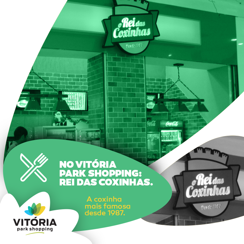 Que tal um lanchinho hoje aqui no Vitória Park Shopping? Emoticon smile Faça aquela parada estratégica no Rei das Coxinhas pra provar as coxinhas mais famosas desde 1987.
