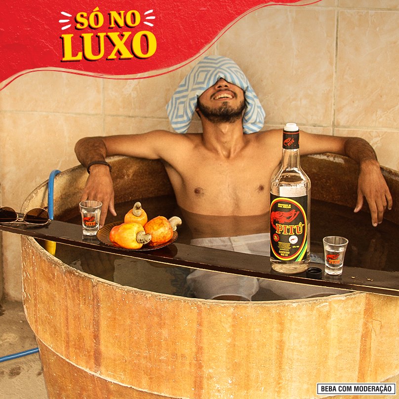 O cabra tá lá de molho… só degustando uma branquinha na boa e petiscando uns tira-gosto. Que vidão, hein, môvéi?