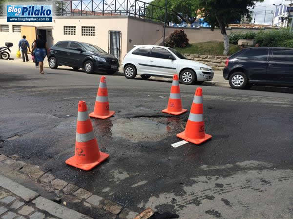 Após a postagem de ontem (29), no nosso jornal eletrônico, hoje (01) pela manhã, ao caminhar pelo local, observei alguns cones da COMPESA sinalizando  o local.