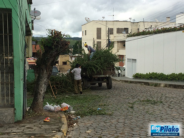 Pois bem, também na manhã de ontem (16), nossas lentes registraram a veracidade das informações do internauta J.S Machado, quando encontramos os funcionários da prefeitura recolhendo os galhos das árvores.