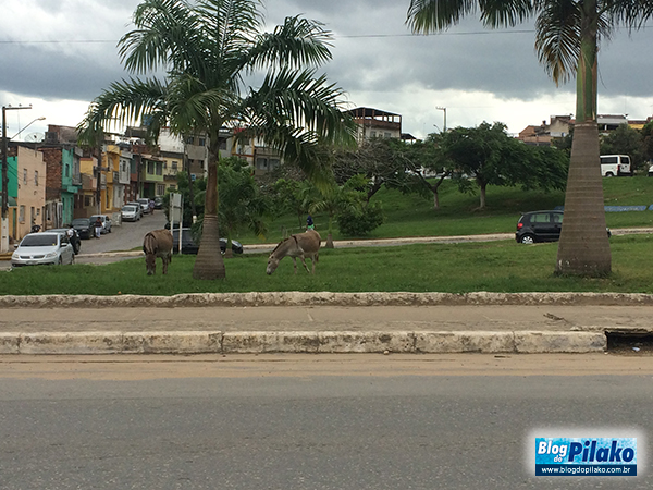 Na manhã de ontem (13) nossas lentes registraram dois burros pastando em um dos canteiros do Terminal Rodoviário, às margens da movimentada Avenida Henrique de Holanda.