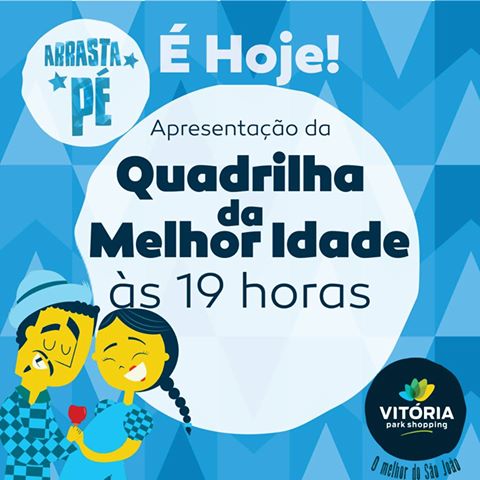 Momento Vitória Park Shopping Publicado em 20 de junho de 2016 por Arquiles Petrus É hoje! Vai rolar a apresentação da Quadrilha da Melhor Idade abrindo os festejos juninos na nossa pracinha da Quermesse. Confira o horário e venha ver de perto: